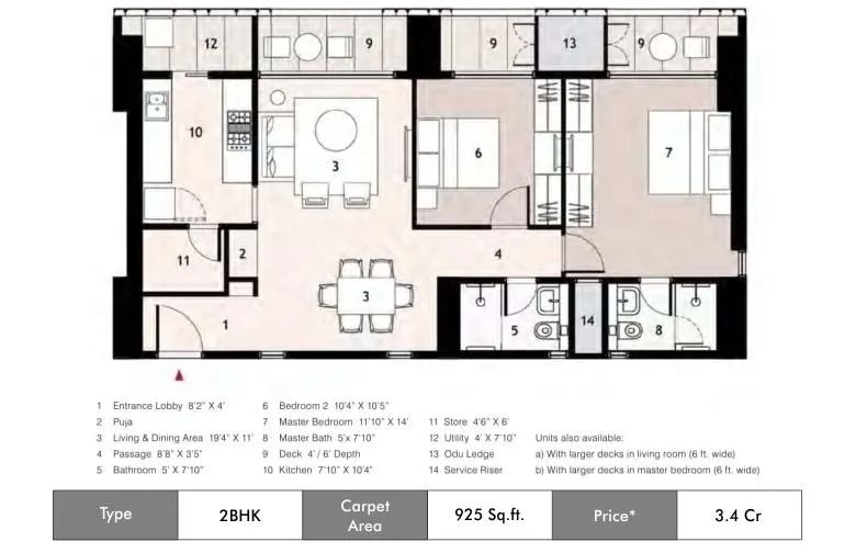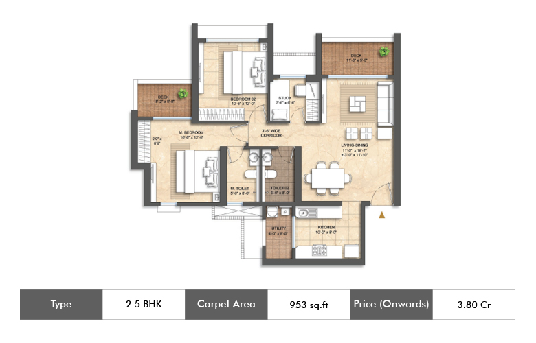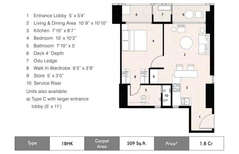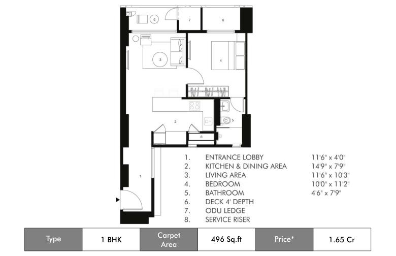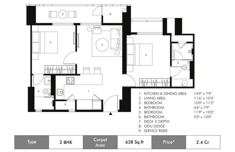 | 2 Bhk | 925 Sq. ft.(Carpet Area) | 4 Cr* All Inc. | |