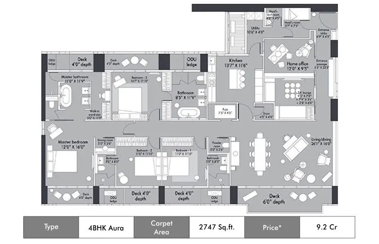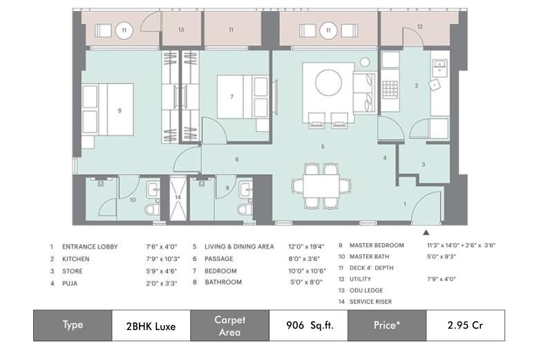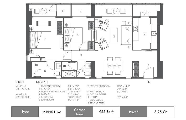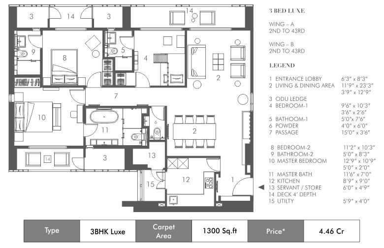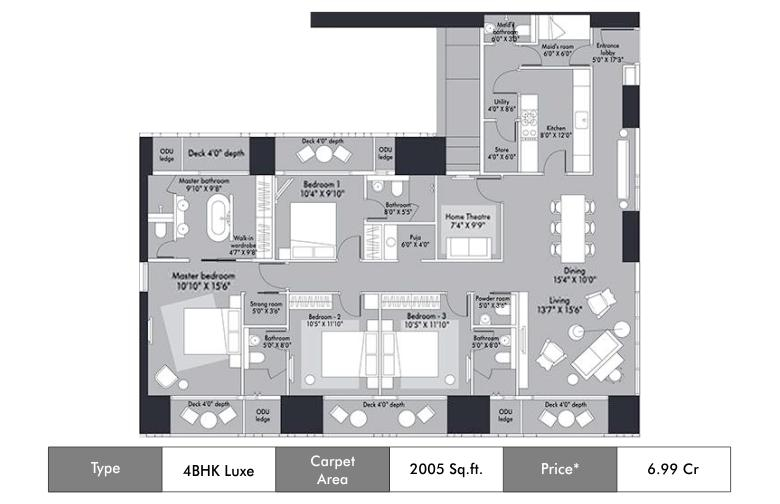 | 4 Bhk Luxe | 2005 Sq. ft. (Carpet Area) | 8.56 Cr* All Inc. |