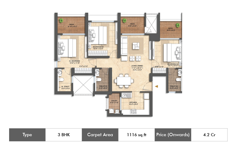 | 3 BHK | 1116 Sq.ft.(Carpet Area) | 4.27 Cr Onwards | |