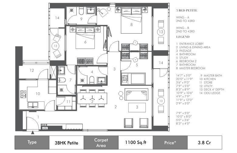 | Penthouse | 2952 Sq.ft.(Carpet Area) | 14.88 Cr Onwards | |