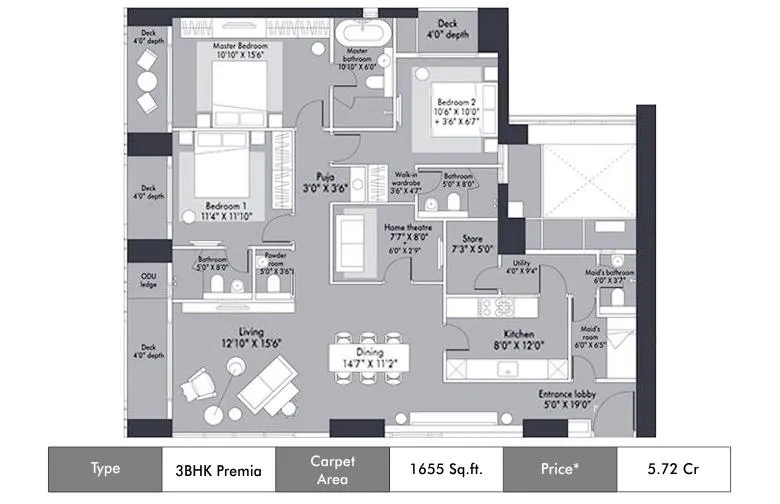 | 3 Bhk Premia | 1655 Sq. ft.(Carpet Area) | 7.73 Cr* All Inc. | |