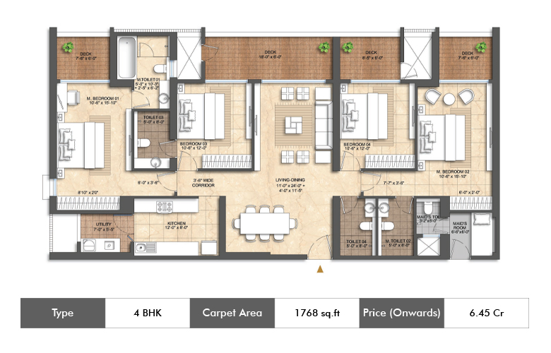 | 4 BHK | 1768 Sq.ft.(Carpet Area) | 6.45 Cr Onwards | |